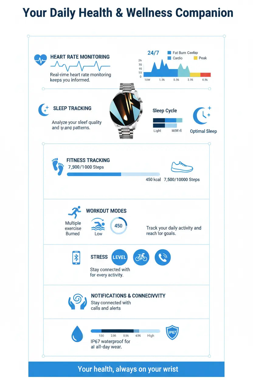 The FILIEKEU Smart Watch features an IP67 waterproof rating, making it resilient against splashes and rain. Its casual silver stainless steel design ensures that it looks great for any occasion, whether you're at the gym or attending a formal event. The combination of style and functionality makes this watch a fantastic accessory for both men and women. You can wear it proudly and know that it delivers on both performance and appearance.